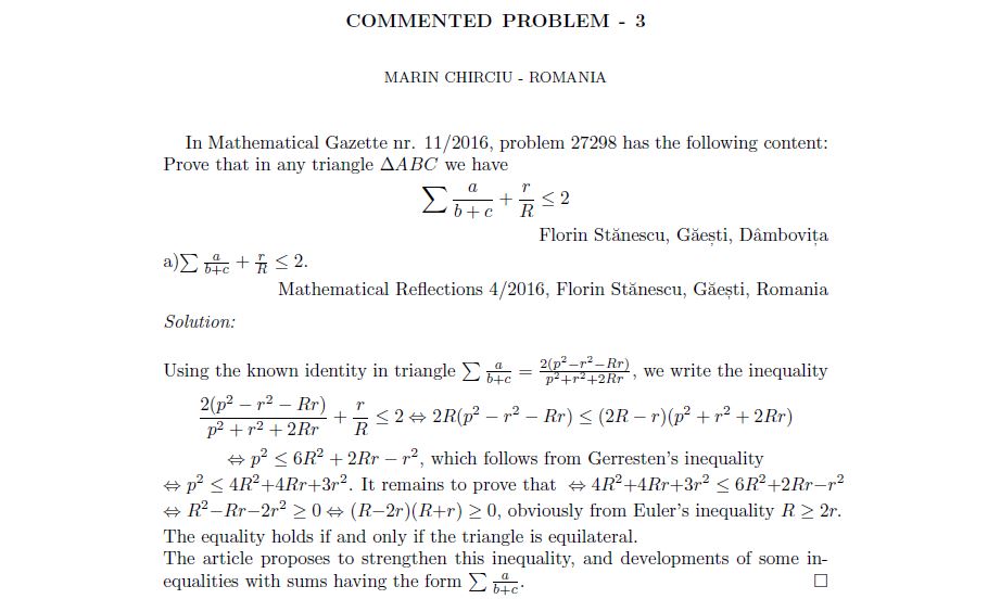 COMMENTED PROBLEM-3 Posted on December 18, 2016July 27, 2018 by ssmrmh Math Note by Marin Chirciu-Romania COMMENTED PROBLEM-3