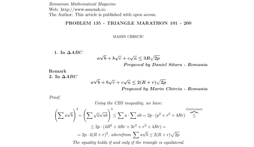 COMMENTED PROBLEM-14 Posted on April 15, 2017July 27, 2018 by ssmrmh MathNote by Marin Chirciu-Romania COMMENTED PROBLEM-14