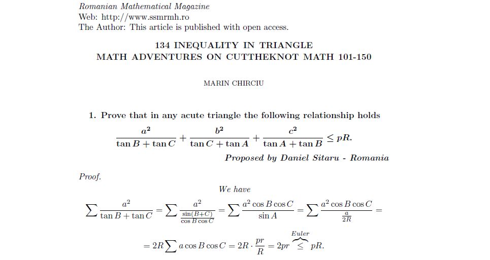 COMMENTED PROBLEM-19 Posted on May 23, 2017November 2, 2018 by ssmrmh MathNote by Marin Chirciu-Romania COMMENTED PROBLEM-19