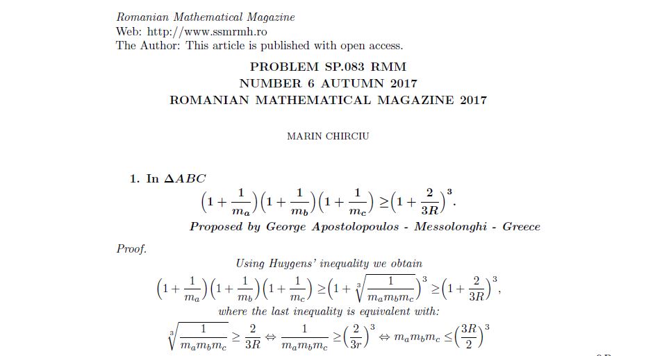 COMMENTED PROBLEM-39 Posted on August 8, 2017February 13, 2019 by ssmrmh MathNote by Marin Chirciu-Romania COMMENTED PROBLEM-39
