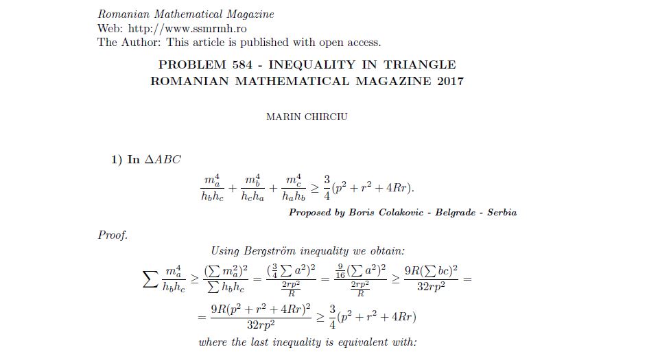 COMMENTED PROBLEM-53 Posted on December 2, 2017January 30, 2019 by ssmrmh MathNote by Marin Chirciu-Romania COMMENTED PROBLEM-53