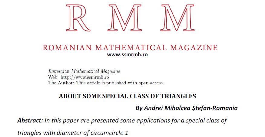 ABOUT SOME SPECIAL CLASS OF TRIANGLES Posted on March 2, 2018 by ssmrmh MathNote by Mihalcea Andrei Stefan-Romania ABOUT SOME SPECIAL CLASS OF TRIANGLES