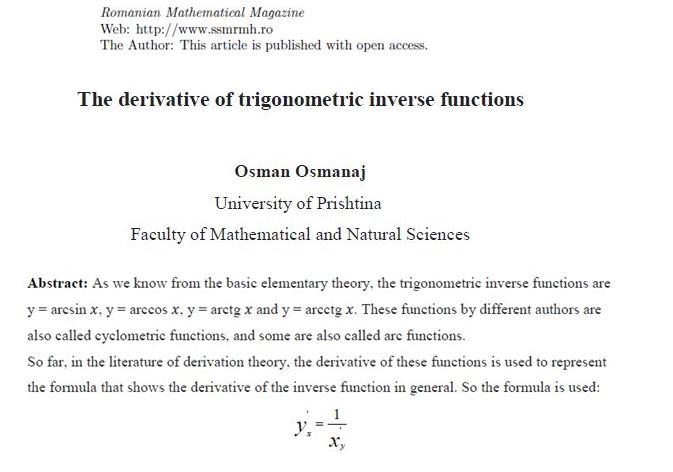 THE DERIVATIVE OF TRIGONOMETRIC INVERSE FUNCTIONS