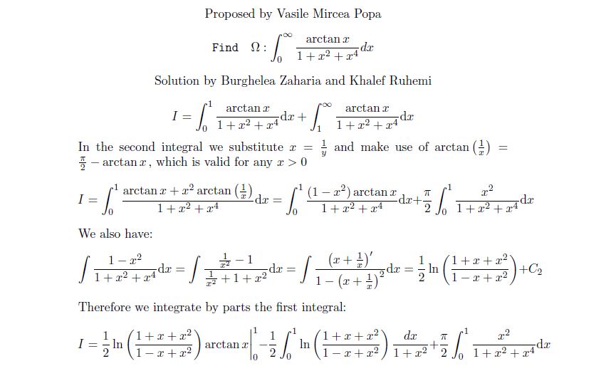 A NICE INTEGRAL BY V.M.POPA