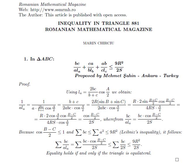 COMMENTED PROBLEM-61 Posted on November 5, 2018 by ssmrmh Math Note by Marin Chirciu-Romania COMMENTED PROBLEM 61