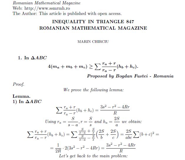 COMMENTED PROBLEM-62 Posted on November 6, 2018November 6, 2018 by ssmrmh Math Note by Marin Chirciu-Romania COMMENTED PROBLEM 62