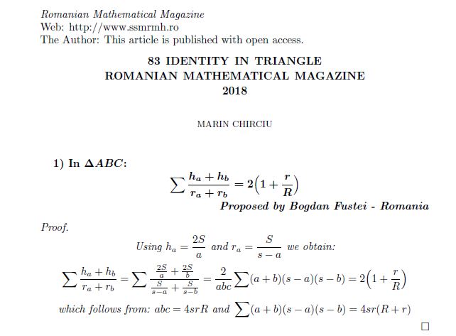 COMMENTED PROBLEM-69 Posted on December 10, 2018 by ssmrmh Math Note by Marin Chirciu-Romania COMMENTED PROBLEM 69