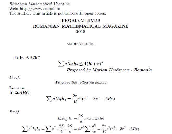 COMMENTED PROBLEM-76 Posted on January 24, 2019 by ssmrmh Math Note by Marin Chirciu-Romania COMMENTED PROBLEM 76