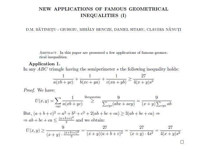 Article by D.M.Batinetu-Giurgiu, Mihaly Bencze, Daniel Sitaru, Claudia Nanuti