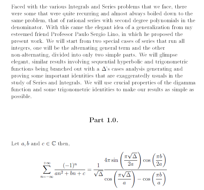 AN ELEGANT DEVELOPING OF THE INTEGERS SERIES INVOLVING DEGREE TWO POLYNOMIALS IN THE DENOMINATOR