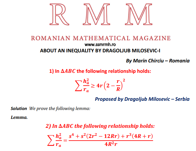 ABOUT AN INEQUALITY BY DRAGOLJUB MILOSEVIC-I