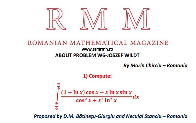 ABOUT PROBLEM W6-JOSZEF WILDT Posted on August 10, 2020 by ssmrmh Math Note by Marin Chirciu-Romania ABOUT PROBLEM W6-JOSZEF WILDT