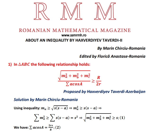 Romanian Mathematical Magazine