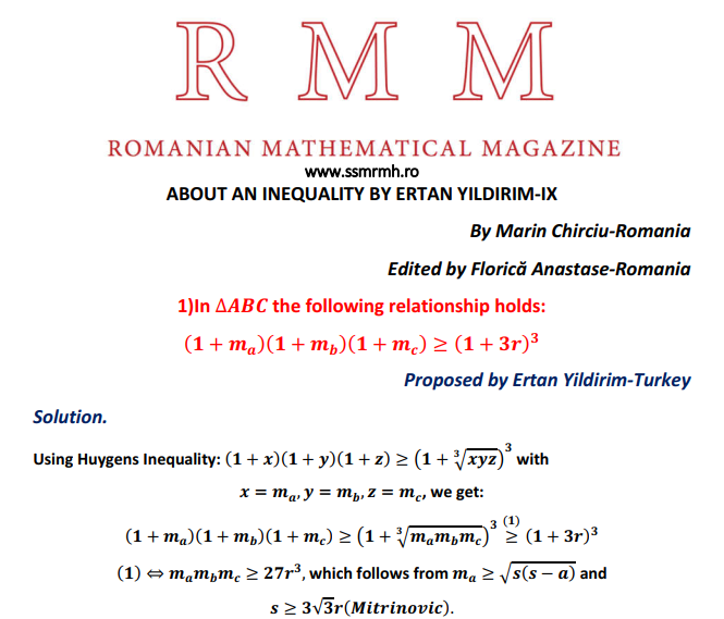 ABOUT AN INEQUALITY BY ERTAN YILDIRIM-IX