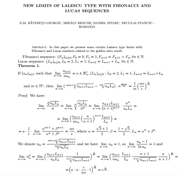 NEW LIMITS OF LALESCU TYPE WITH FIBONACCI AND LUCAS NUMBERS