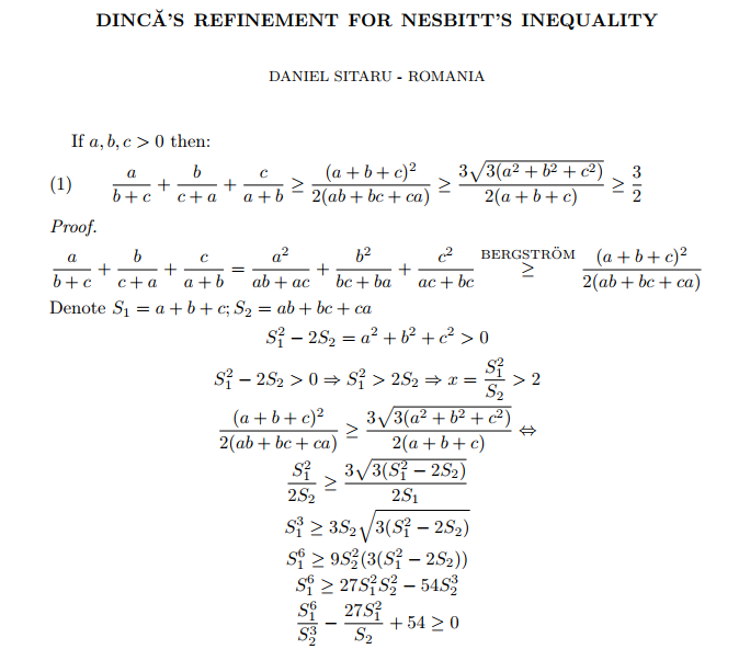 DINCĂ’S REFINEMENT FOR NESBITT’S INEQUALITY