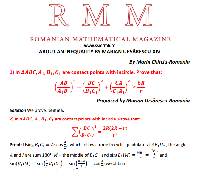 ABOUT AN INEQUALITY BY MARIAN URSĂRESCU-XIV