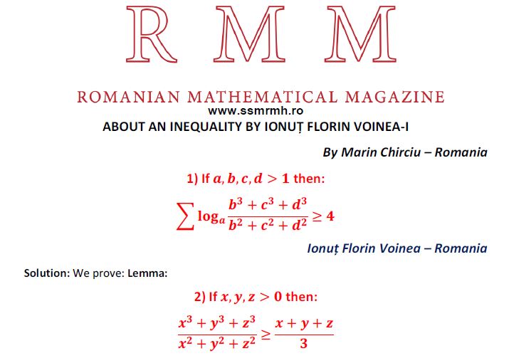 ABOUT AN INEQUALITY BY IONUȚ FLORIN VOINEA-I