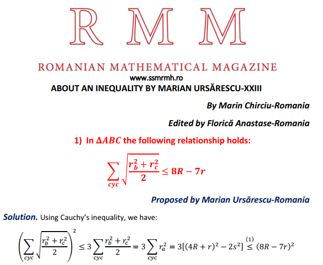 ABOUT AN INEQUALITY BY MARIAN URSĂRESCU-XXIII