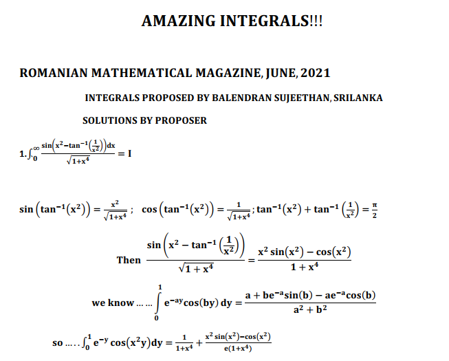 AMAZING SUJEETHAN BALENDRAN INTEGRALS Posted on June 30, 2021June 30, 2021 by ssmrmh Math Note by Sujeethan Balendran-SriLanka AMAZING SUJEETHAN BALENDRAN INTEGRALS
