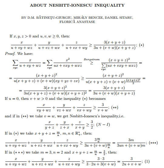 Math Note by D.M.Bătinețu-Giurgiu,Mihaly Bencze,Daniel Sitaru-Florică Anastase-Romania