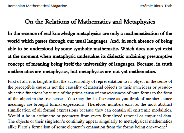ON THE RELATION BETWEEN MATHEMATICS AND METAPHYSICS Posted on September 20, 2021 by ssmrmh Article by Jeremie Rioux Toth-Canada On-the-Relations-of-Mathematics-and-Metaphysics.JRT