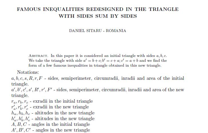 FAMOUS INEQUALITIES REDESIGNED IN THE TRIANGLE WITH SIDES SUM BY SIDES