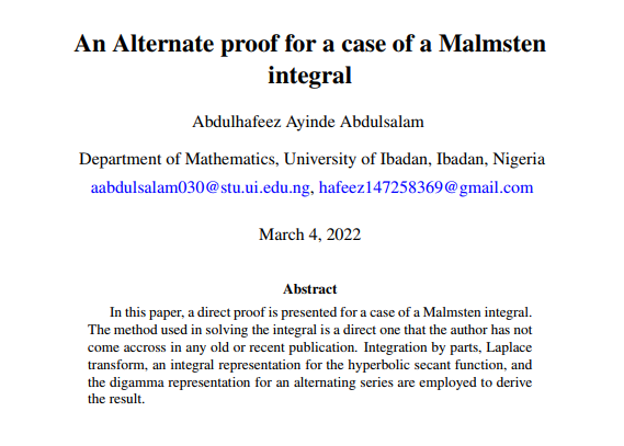 AN ALTERNATE PROOF FOR A CASE OF A MALMSTEN INTEGRAL