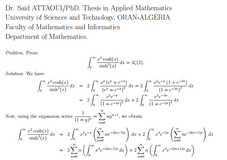 AN AMAZING INTEGRAL BY SAID ATTAOUI-(IV) Posted on April 3, 2022 by ssmrmh Article by Said Attaoui-Oran-Algerie AN AMAZING INTEGRAL BY SAID ATTAOUI-(IV)