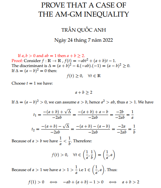 A CASE OF AM-GM INEQUALITY Posted on July 24, 2022 by ssmrmh Math Note by Tran Quoc Anh-Vietnam A CASE OF AM-GM INEQUALITY