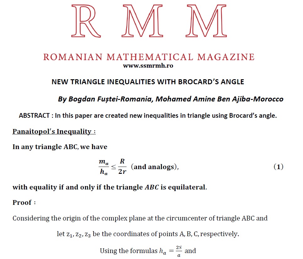 Article by Bogdan Fuștei-Romania, Mohamed Amine Ben Ajiba-Morocco