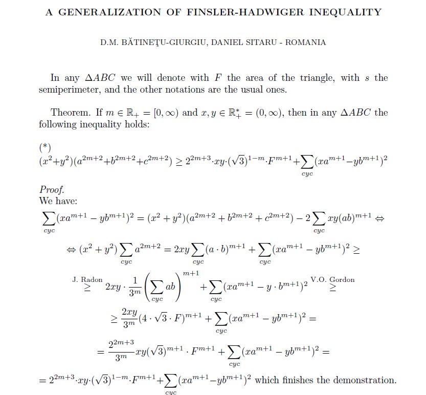 A GENERALIZATION OF FINSLER-HADWIGER INEQUALITY